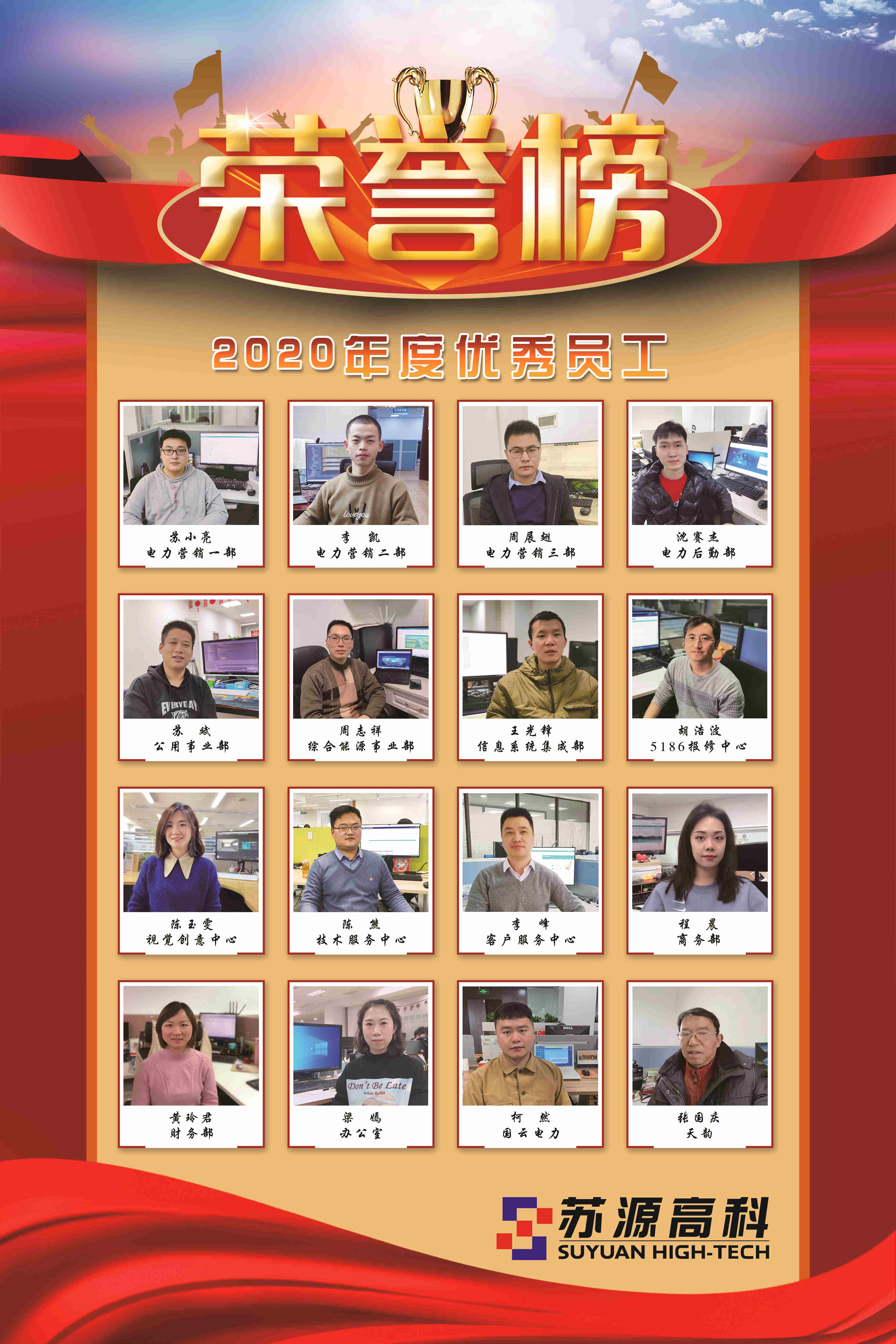 為表彰先進,樹立榜樣,充分發揮先進典型的示范引領作用,進一步激發廣大干部職工干事創業熱情,推動公司發展再上新臺階,公司決定:授予劉賢通等6名同志“2020年度蘇源高科先進部門經理”稱號;授予張端天等7名同志“2020年度蘇源高科杰出項目經理”稱號;授予陳玉雯等16名同志“2020年度蘇源高科優秀員工”稱號。